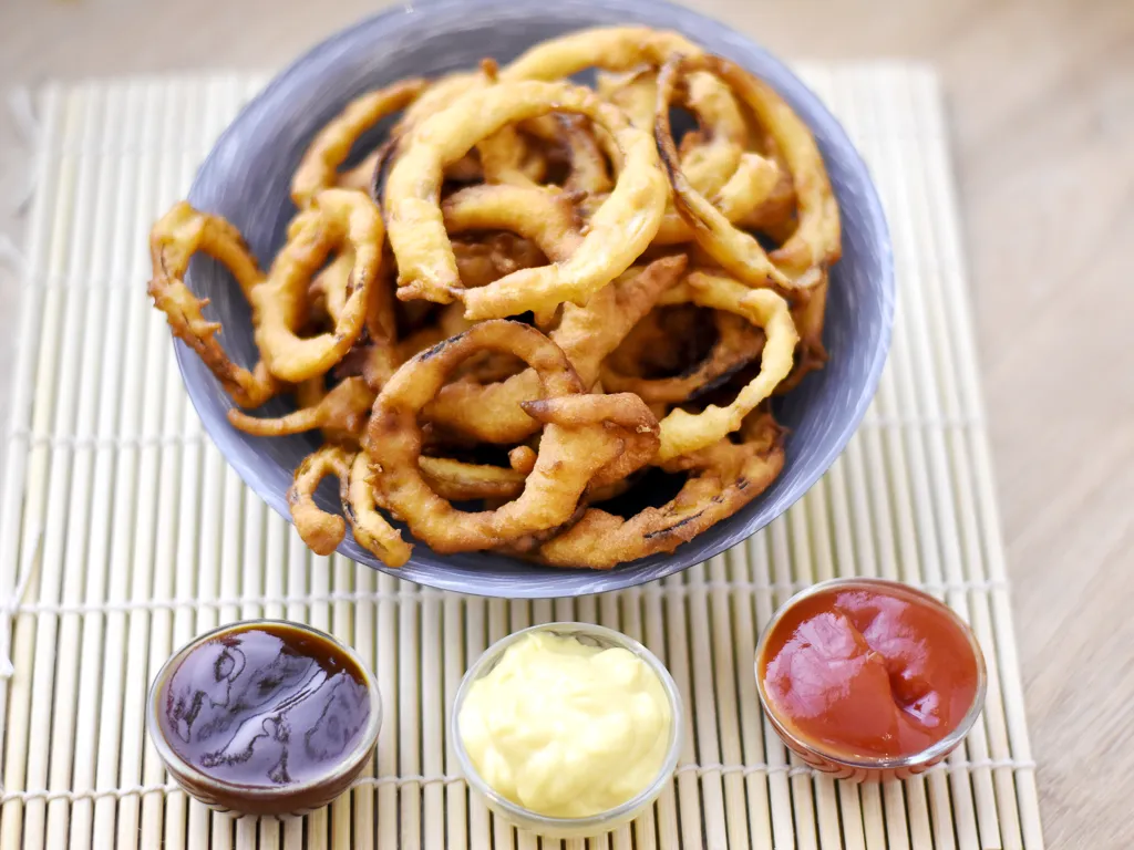 déguster, en trempant les onion rings dans la sauce choisie.