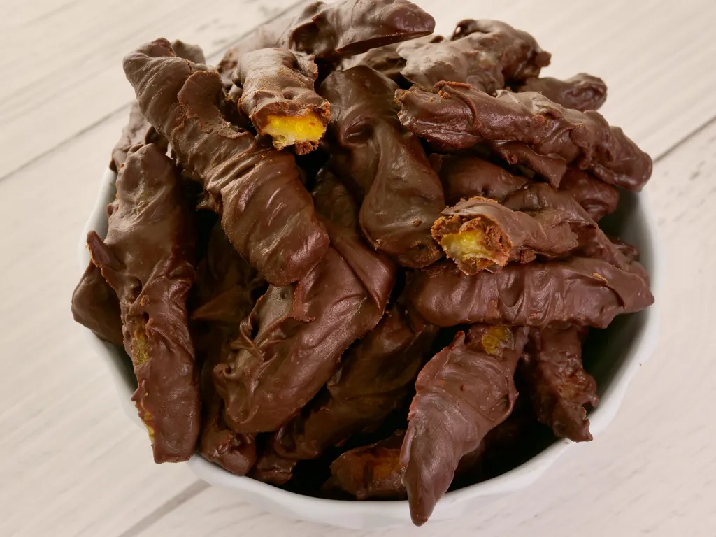 retirer les écorces une à une et les laisser durcir sur du papier sulfurisé. mettre au frigo.