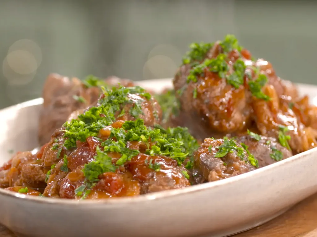 versez le vin blanc, laissez réduire. ajoutez les tomates pelées puis le fond de veau dans la cocotte. laissez mijoter à feu doux et à couvert pendant 1h30 puis ôtez le couvercle.