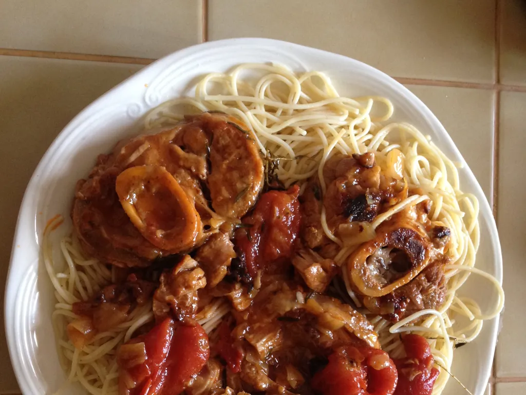 farine, oignon, tomate, huile de tournesol, poivre, sel, jarret de veau