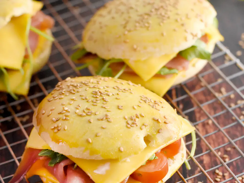 dorer les pains avec un mélange jaune d’œuf + lait (10 g de lait).