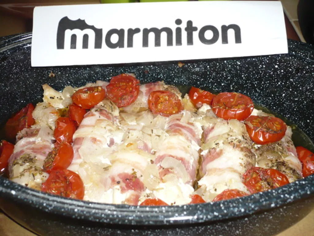 lard fumé, tomate, huile d'olive, poivre, sel, blanc de poulet, échalote