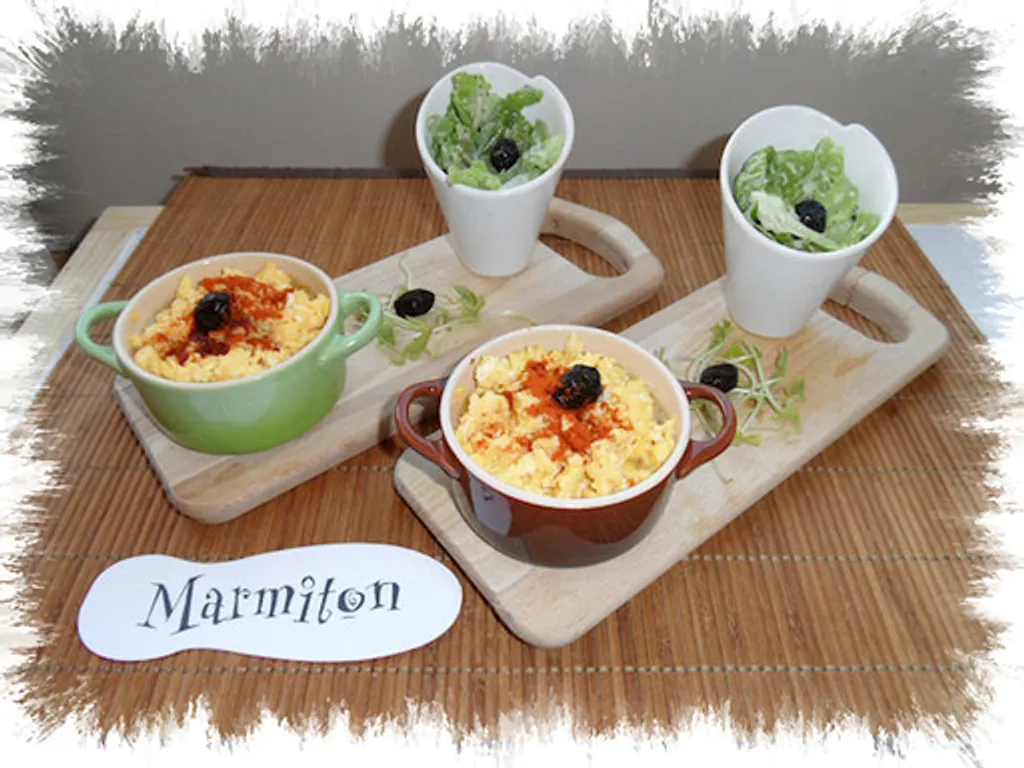 pendant ce temps, faire un œuf brouillé dans la petite poêle (au beurre, éviter de le faire à l'huile).