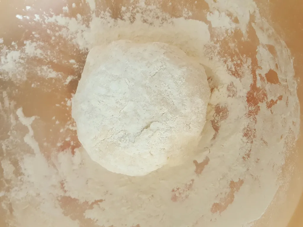 -poser la pâte dans un saladier avec un peut de farine autour de la pâte.