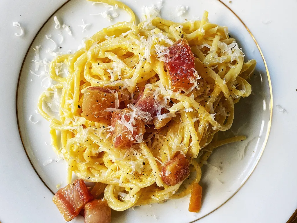 poivre, sel, spaghetti, joue de porc, pecorino, oeuf