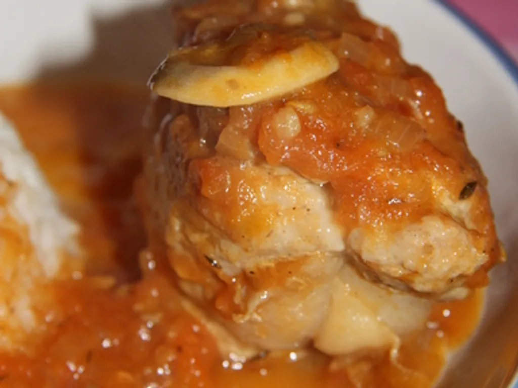 tomate, champignon de paris, bouillon de volaille, oignon, ail, thym, sel, poivre, paupiette