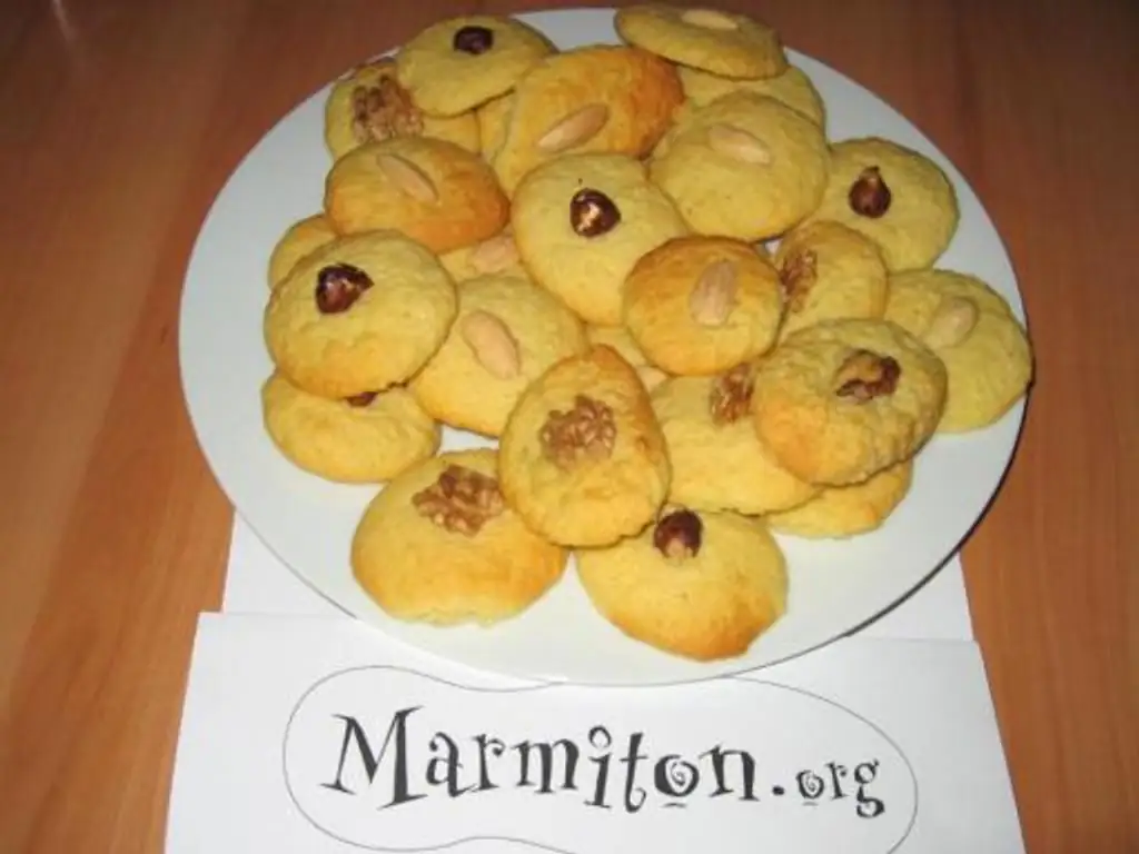 déposer au milieu de chaque gâteau 1/2 noix ou une amande ou une noisette...