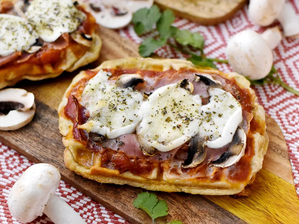 etaler les boulettes de pâte à pizza, déposer une pâte sur le gaufrier.