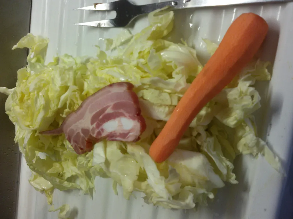 beurre, oignon, carotte, eau, poivre, sel, chou, poitrine fumée