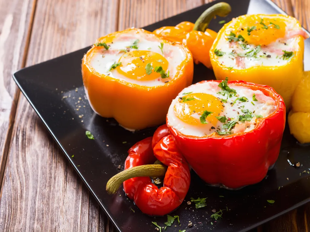 poivron rouge, pomme de terre, oignon, ail, huile, sel, oeuf, ciboulette
