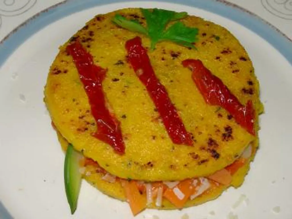 polenta, courgette, carotte, piment d'espelette, curry, basilic, parmesan râpé, pesto