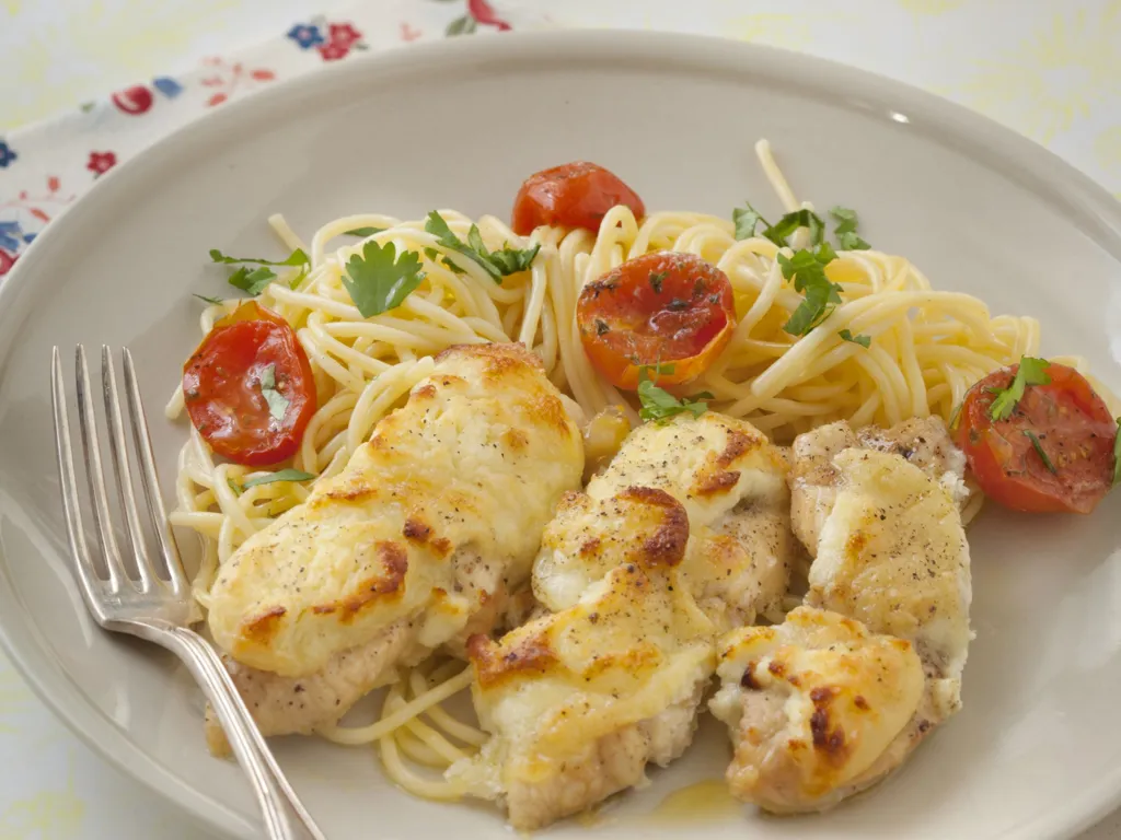 poivron rouge, ail, cumin, cannelle, huile d'olive, poivre, sel, blanc de poulet, crottin de chavignol, estragon