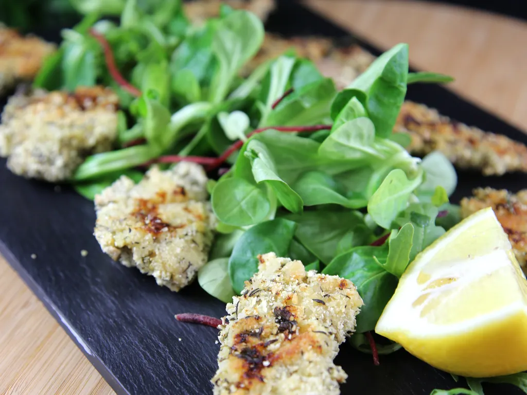 yaourt, ail, thym, basilic, origan, sel, poivre, huile de tournesol, escalope de poulet, chapelure