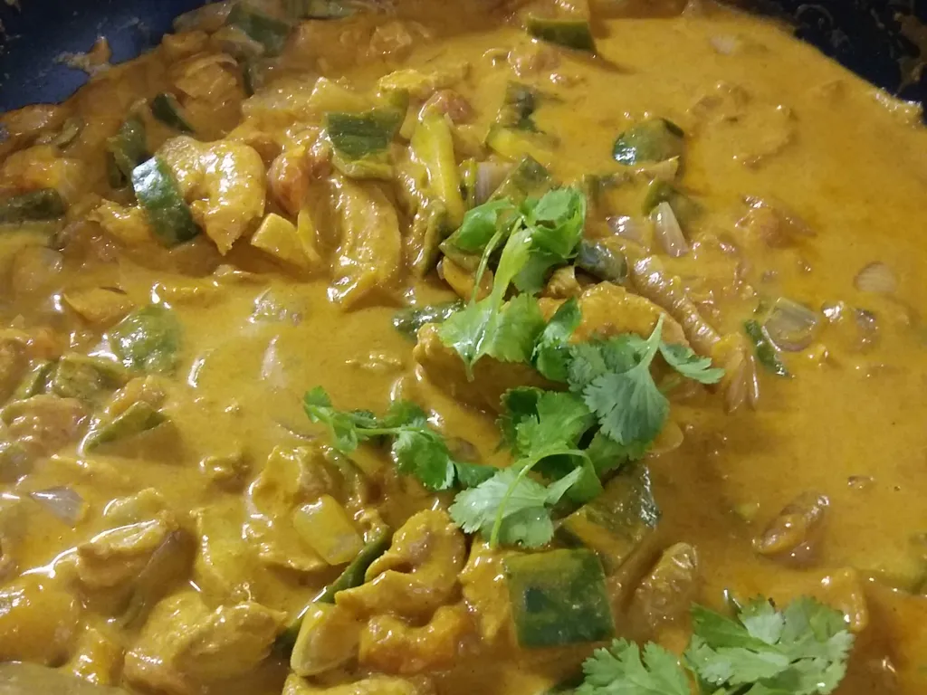 quand le poulet est cuit, le couper en lamelles et l'incorporer à la sauce. laisser mijoter quelque minutes.