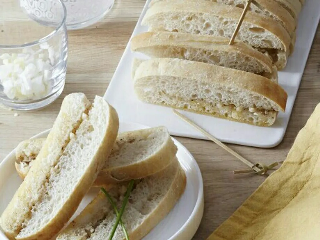 coupez les 2 baguettes précuites dans le sens de la longueur et enlevez un peu de mie.