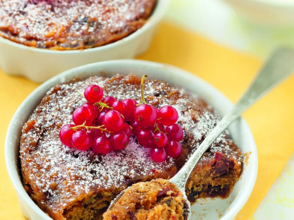 après cuisson : démouler le pudding dès la sortie, nappez-le de confiture d'orange ou abricot ou autre... ou miel, ou comme moi de sirop d'érable.