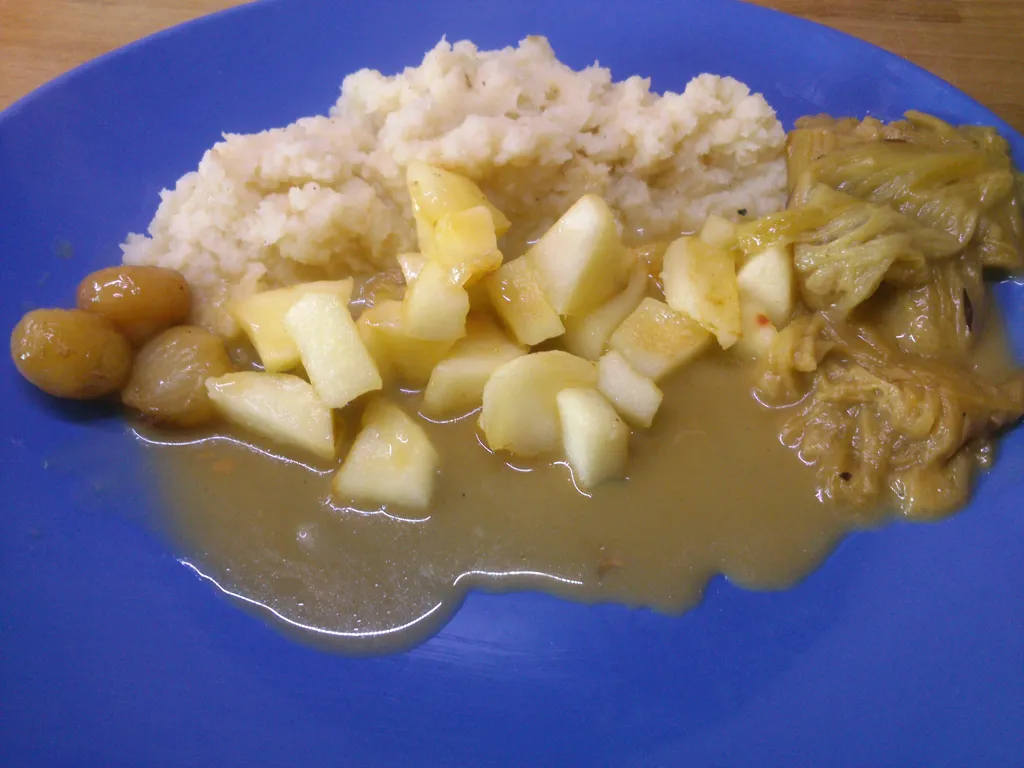 eplucher le celeri rave et les pommes. couper le celeri en gros morceaux. couper les pommes en deux.