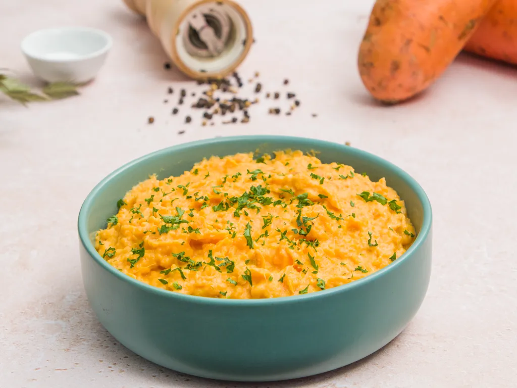 éplucher et couper en gros morceau les patates douces, les faire cuire 15-20 min dans de l'eau bouillante salée.