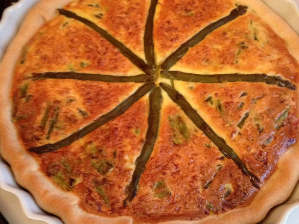 pâte brisée, asperge, parmesan râpé, beurre, poivre, sel, crème liquide, oeuf