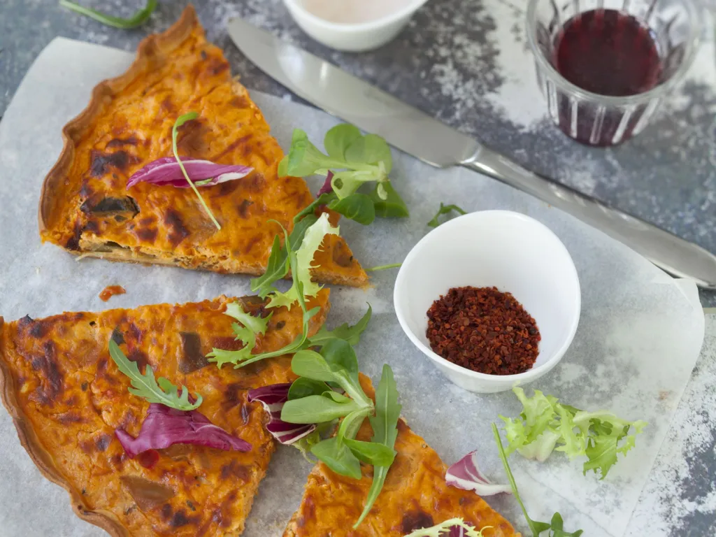 paprika, curry, basilic, herbes de provence, origan, poivre, sel, pâte brisée, fromage blanc, gruyère râpé, ratatouille, oeuf