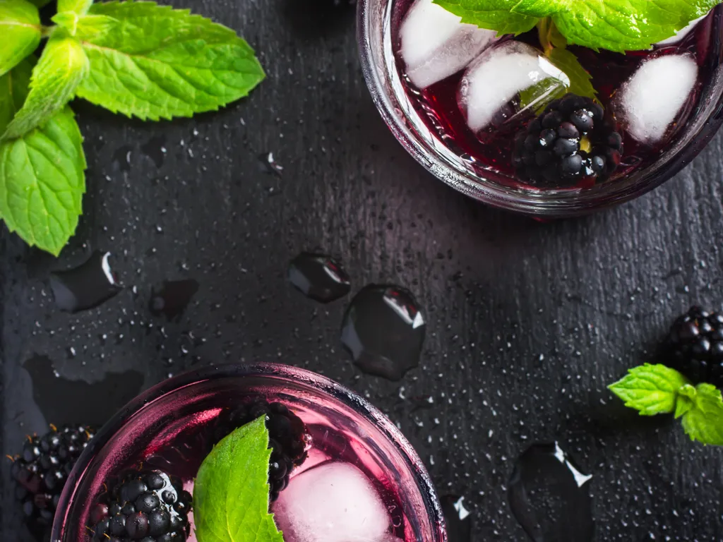 eau, sucre fin, cognac, mûres