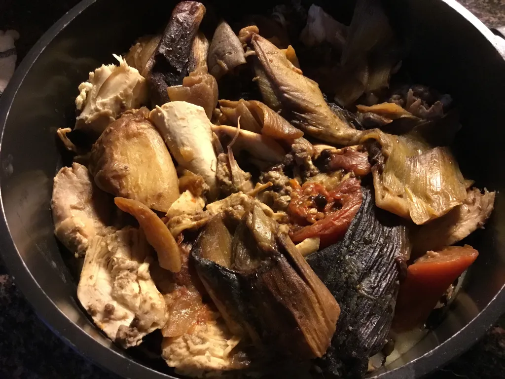 pendant ce temps vous pouvez émietter votre poulet, pour ma part je ne garde pas la peau mais si vous aimez il est possible de l'ajouter à la recette.