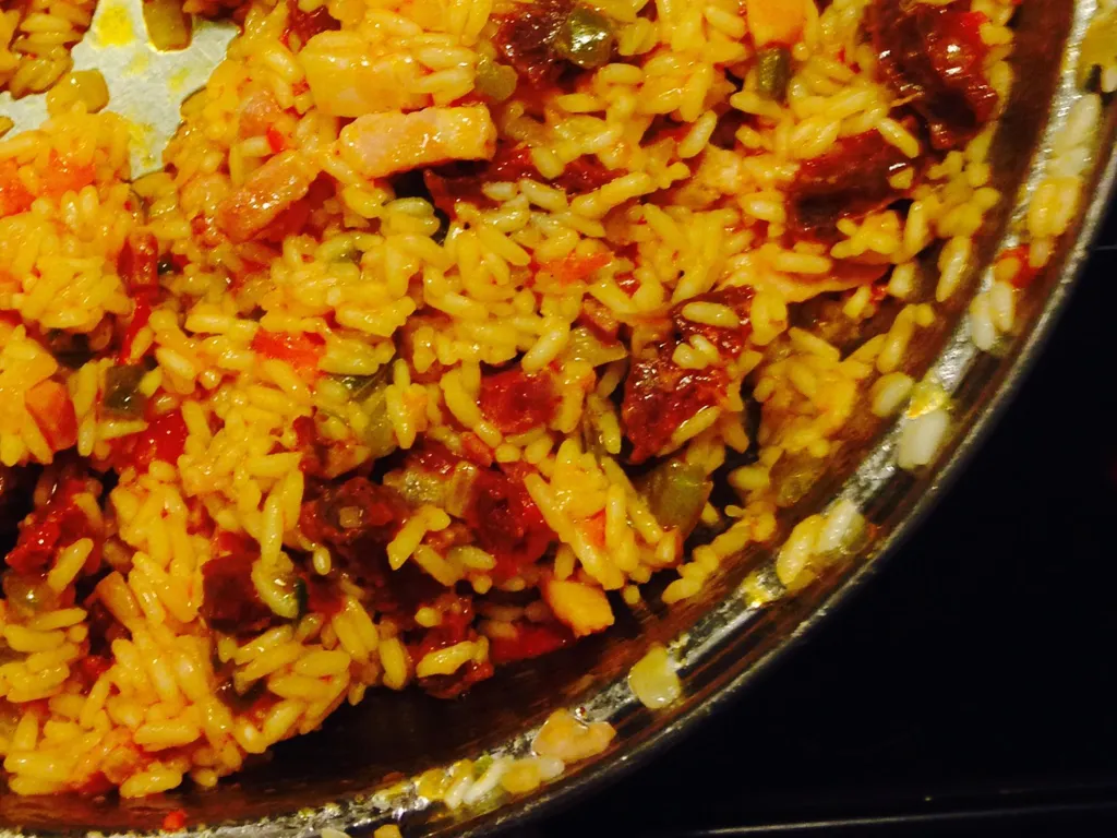 laisser cuire un peu afin que le riz prenne la couleur du chorizo puis servir.