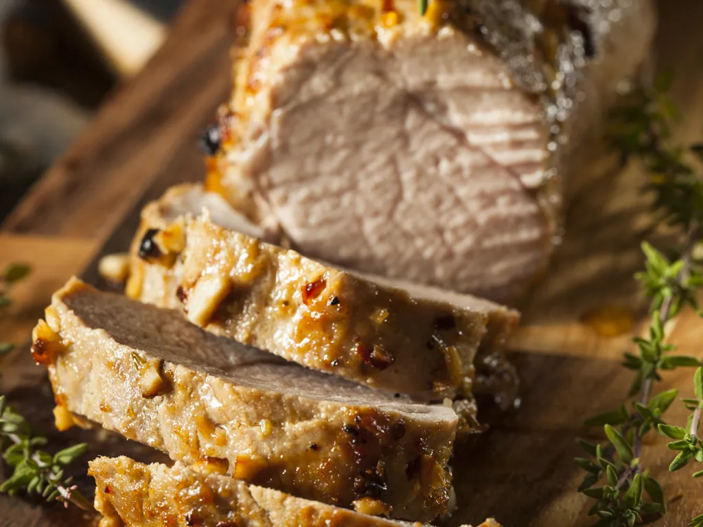 poivre, sel, thym, rôti de porc, margarine, laurier