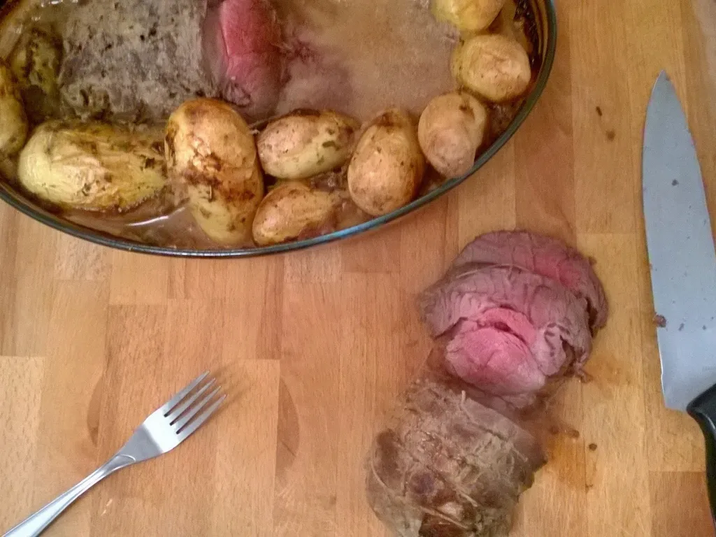 laissez mariner 24 heures si possible (cela parfume et attendri la viande), le tourner à mi-temps.