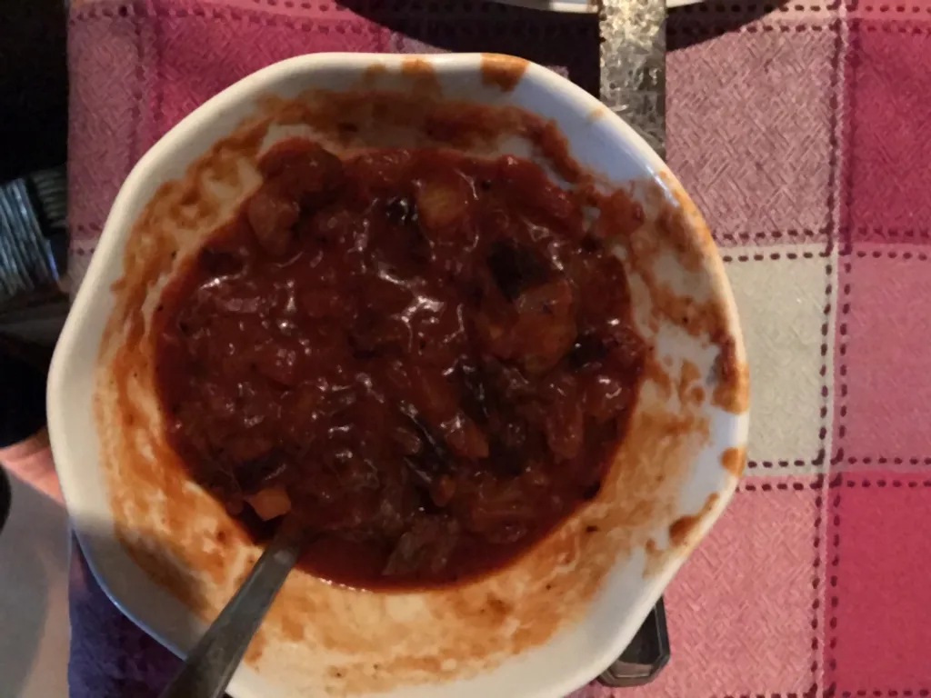 pruneau, oignon, concentré de tomates, vin blanc, bouillon, sucre
