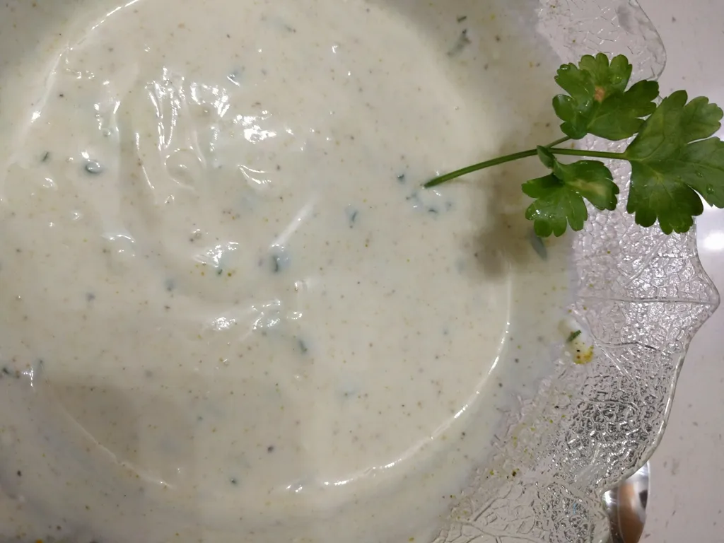 yaourt, paprika, jus de citron, sel, poivre, cerfeuil, ciboulette