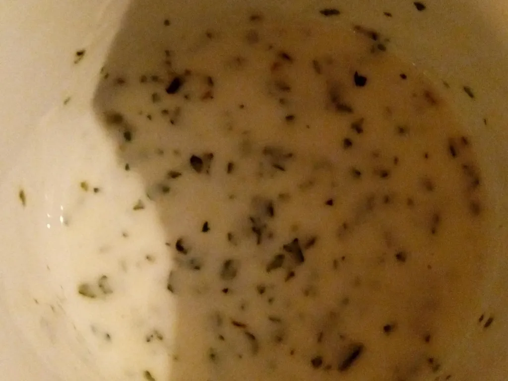 mélanger la crème fraîche, l'ail, le sel, le poivre et la coriandre.