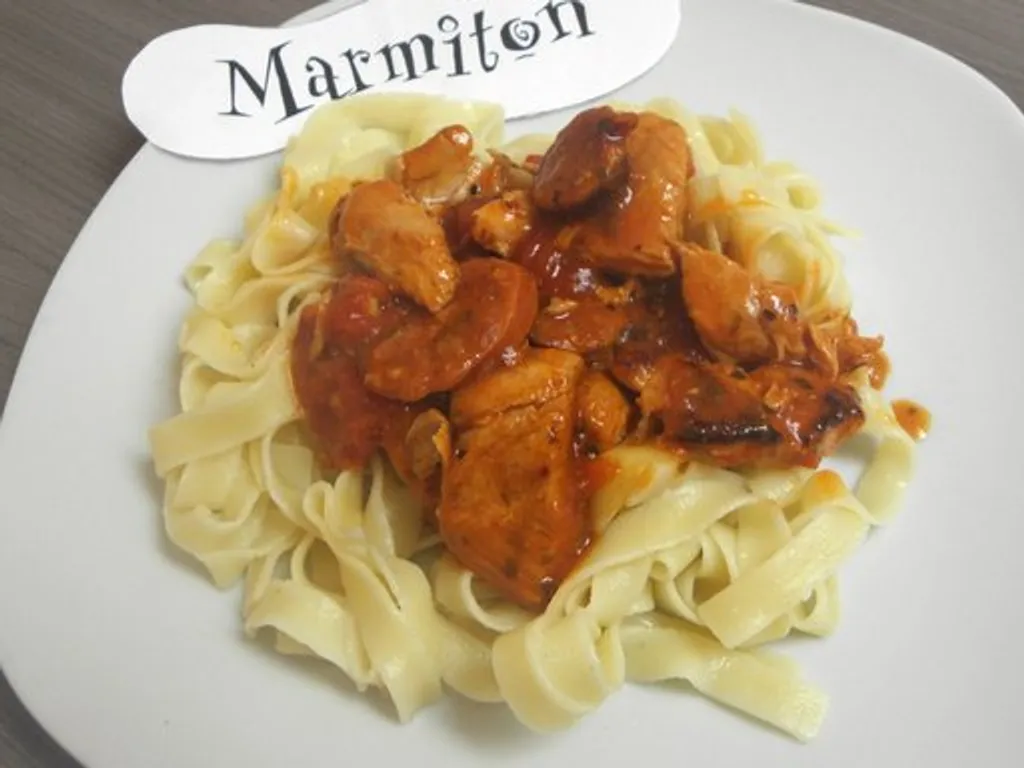 oignon, chorizo, huile d'olive, farine, cube de bouillon, eau, poivre, sel, origan, dinde, pulpe de tomate