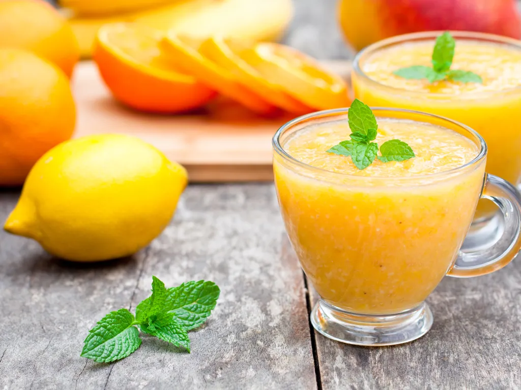 orange, citron, yaourt, graines de lin