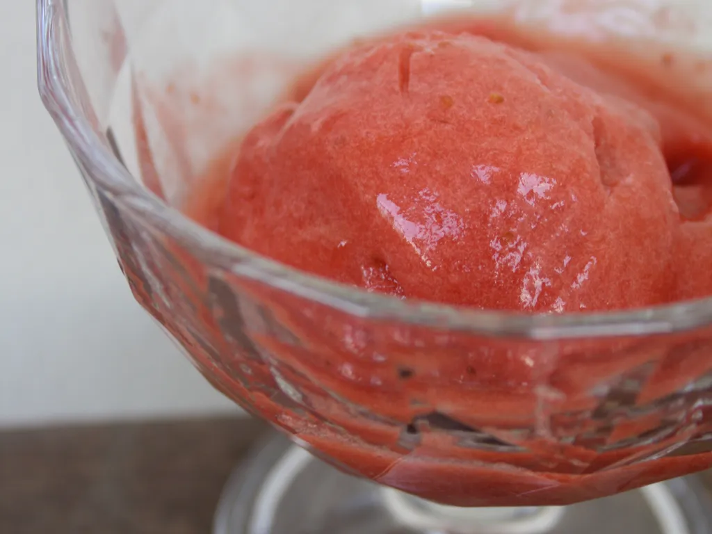 quand la préparation est bien froide, mettre en sorbetière 30 min, puis au congélateur.