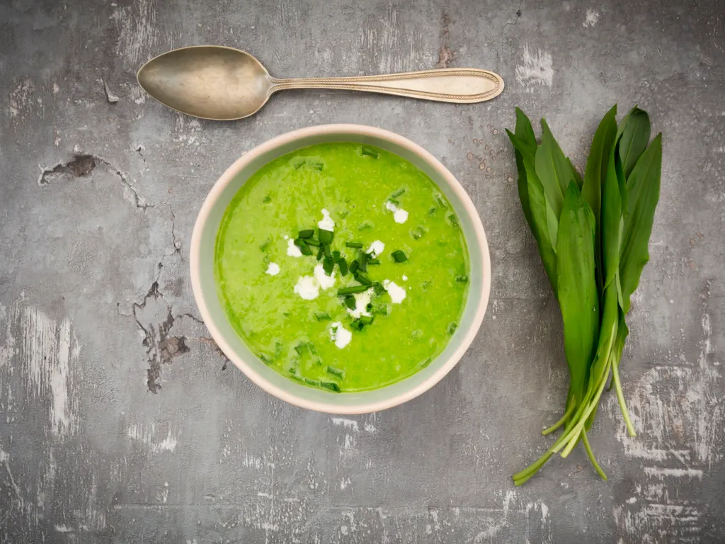 ajouter à la soupe l'ail d'ours, la crème et un peu de jus de citron. mixer le tout et servir.