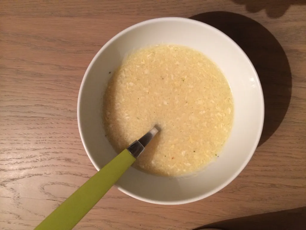 eau, tapioca, lait, sel, poivre, pieds, cube de bouillon, oeuf