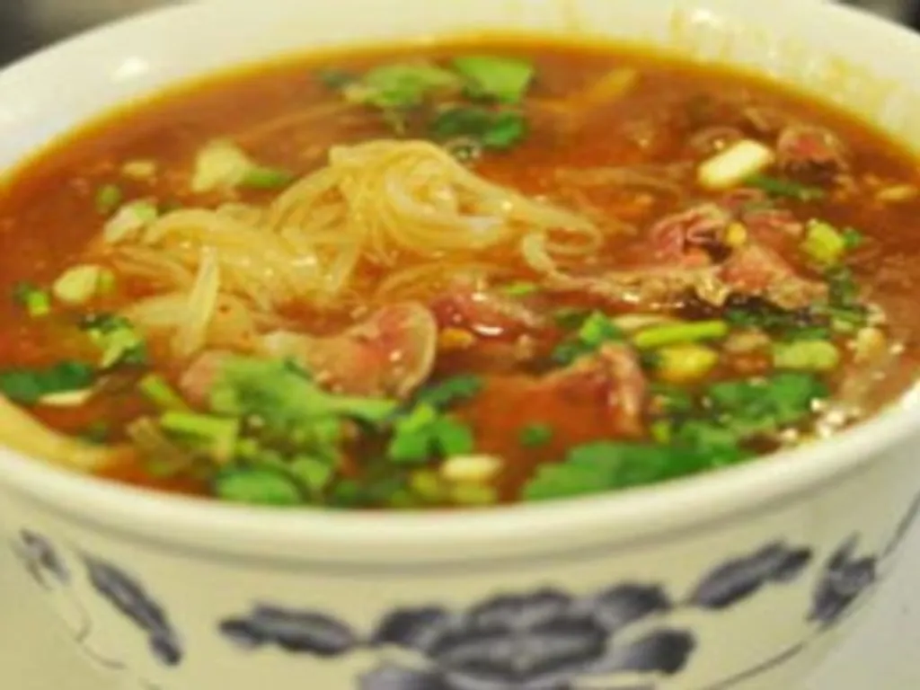carotte, tomate, céleri, champignon, bouillon de boeuf, gingembre, boeuf, navet, nouilles, crevettes, ciboulette, sauce soja