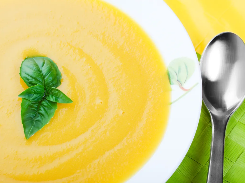 courgette, bouillon de volaille, ail, poivre, sel, muscade, piment d'espelette, potiron, mascarpone, basilic frais