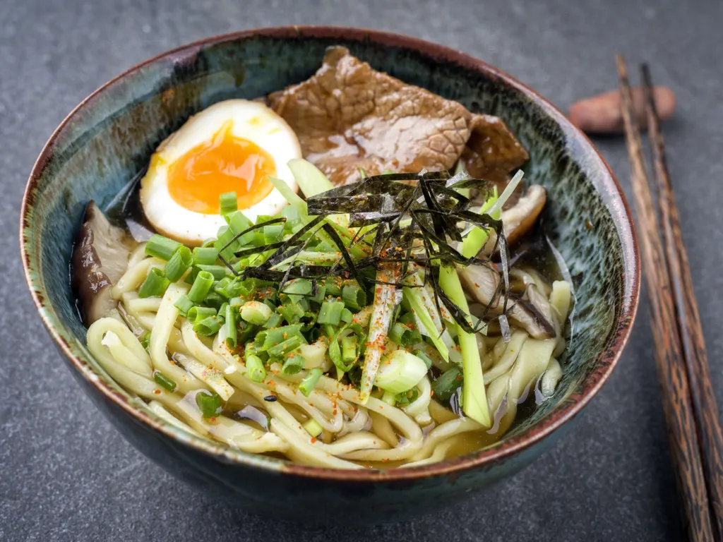 poireau, carotte, bouillon, huile, poivre, sel, ramen, soja, viande, ciboulette, sauce soja
