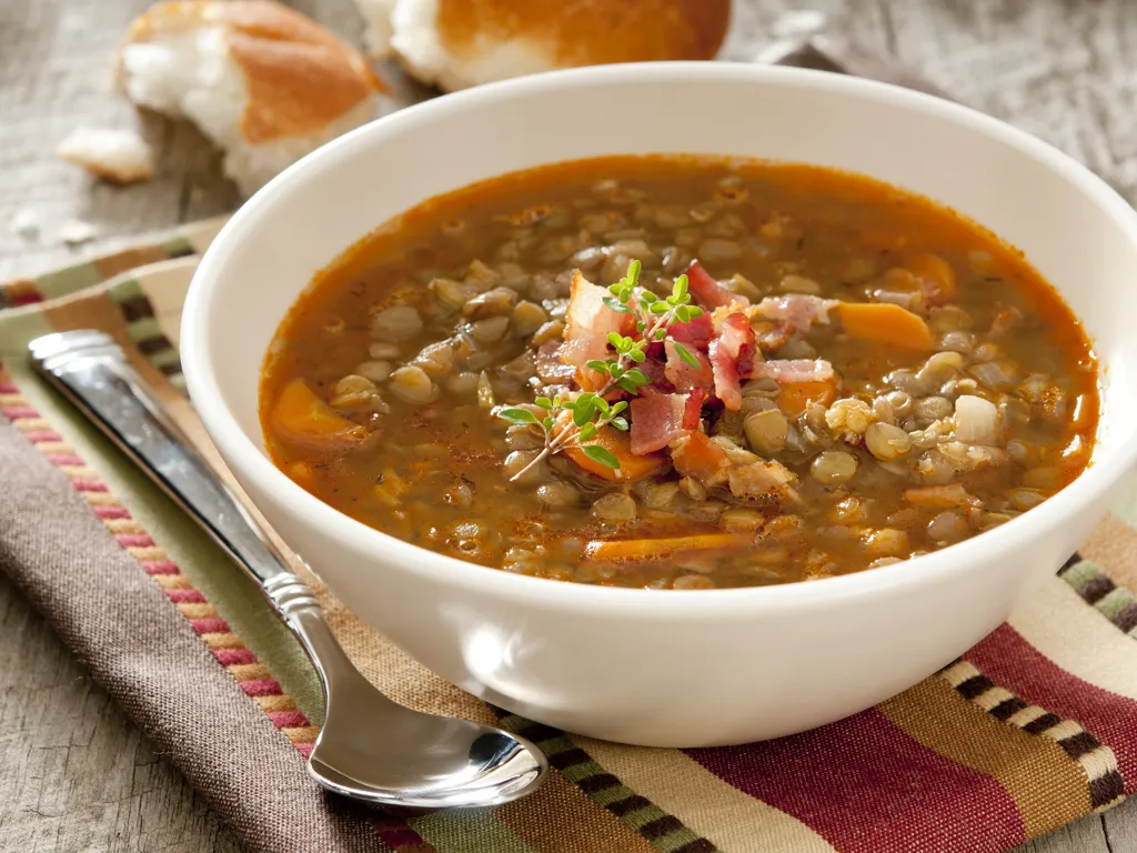 pomme de terre, lardons, bouillon de volaille, oignon, lentilles, citron vert, ananas
