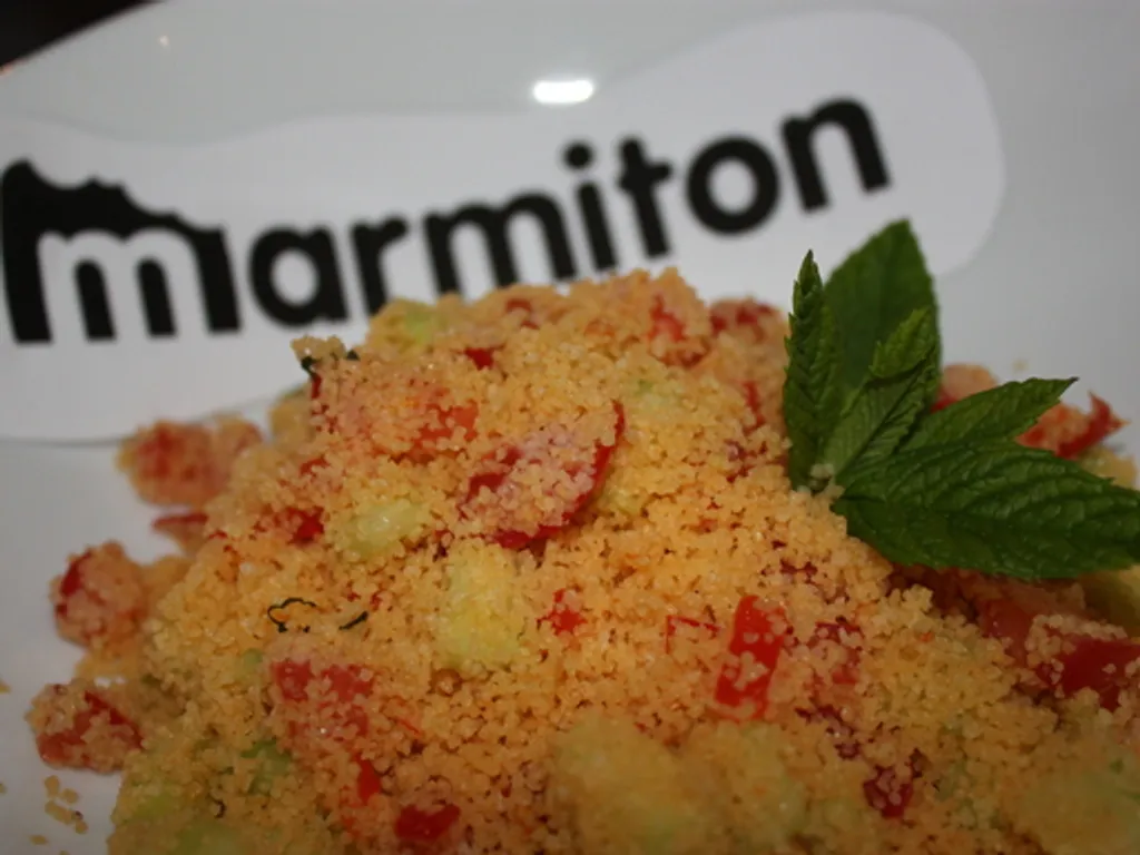citron, tomate, poivron vert, huile d'olive, poivre, sel, citron, basilic, semoule, concombre, basilic frais, menthe, menthe