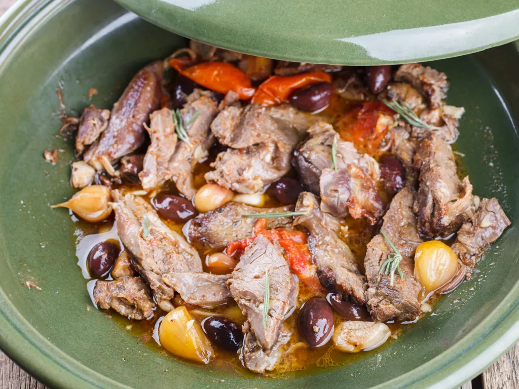 ajouter les olives ébouillantées et cuire à feu très très doux 1 h.