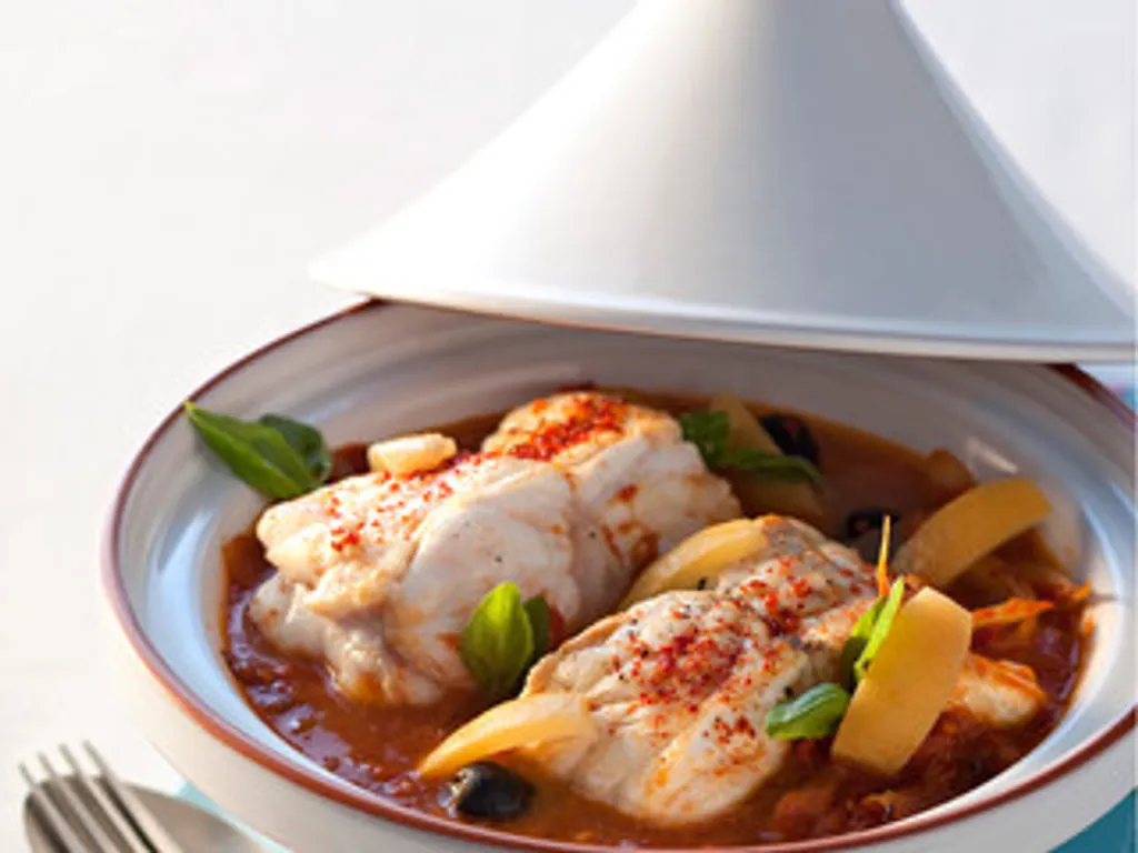 dans un grand plat, mélangez 2 cuillères à soupe d'huile d'olive, le piment, le cumin et les clous de girofle. salez et poivrez. laissez mariner la lotte dans ce mélange pendant 1 heure, en mélangeant de temps en temps afin que les morceaux soient bien enduits de la préparation.