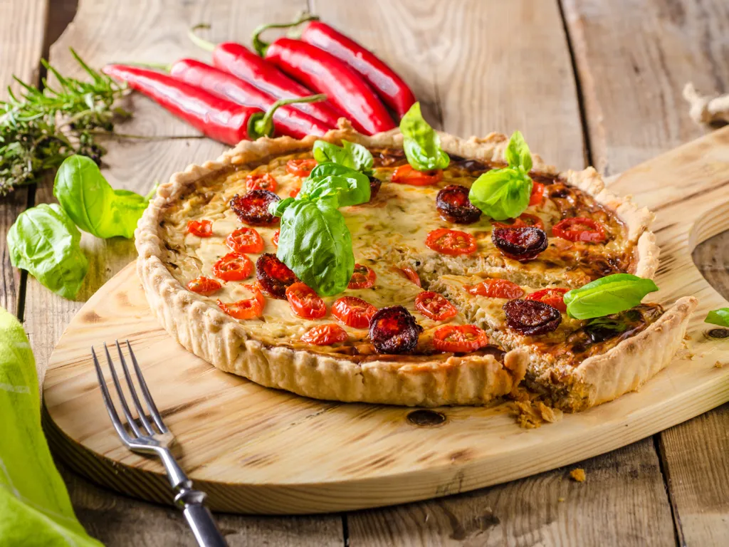 pâte brisée, chorizo, poivre, sel, ratatouille, oeuf, crème liquide