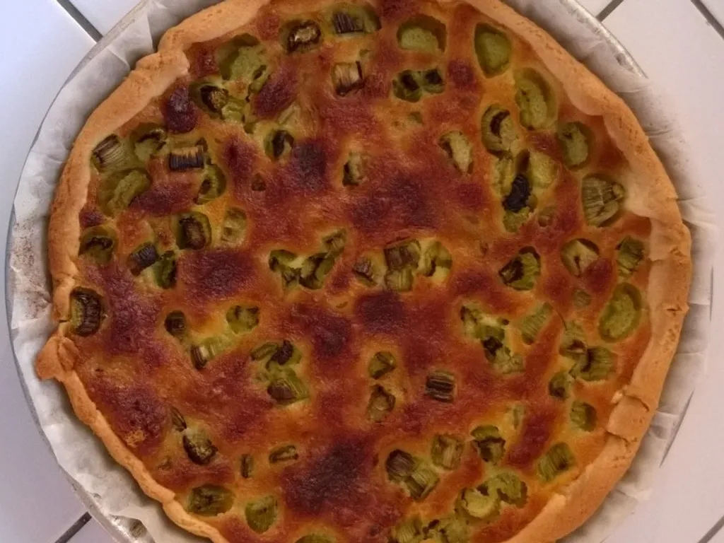beurre, sucre, biscotte, oeuf, rhubarbe, beurre, farine, eau, sel