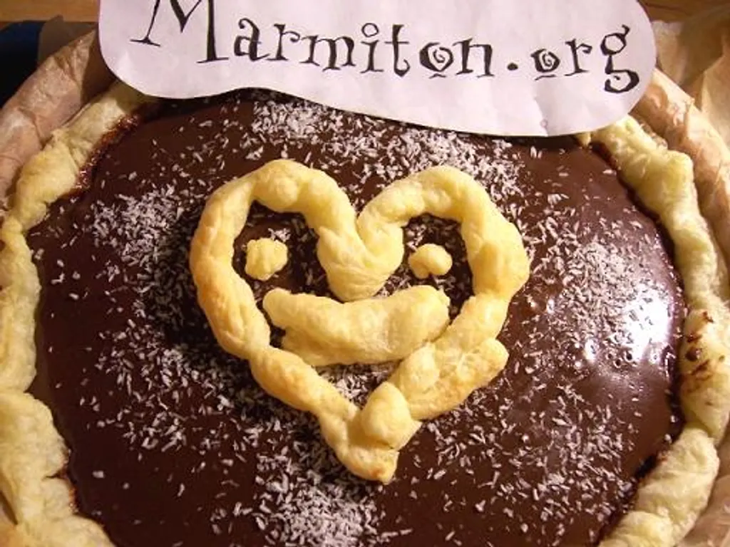 chocolat au lait, noix de coco rapée, pâte sablée, crème liquide