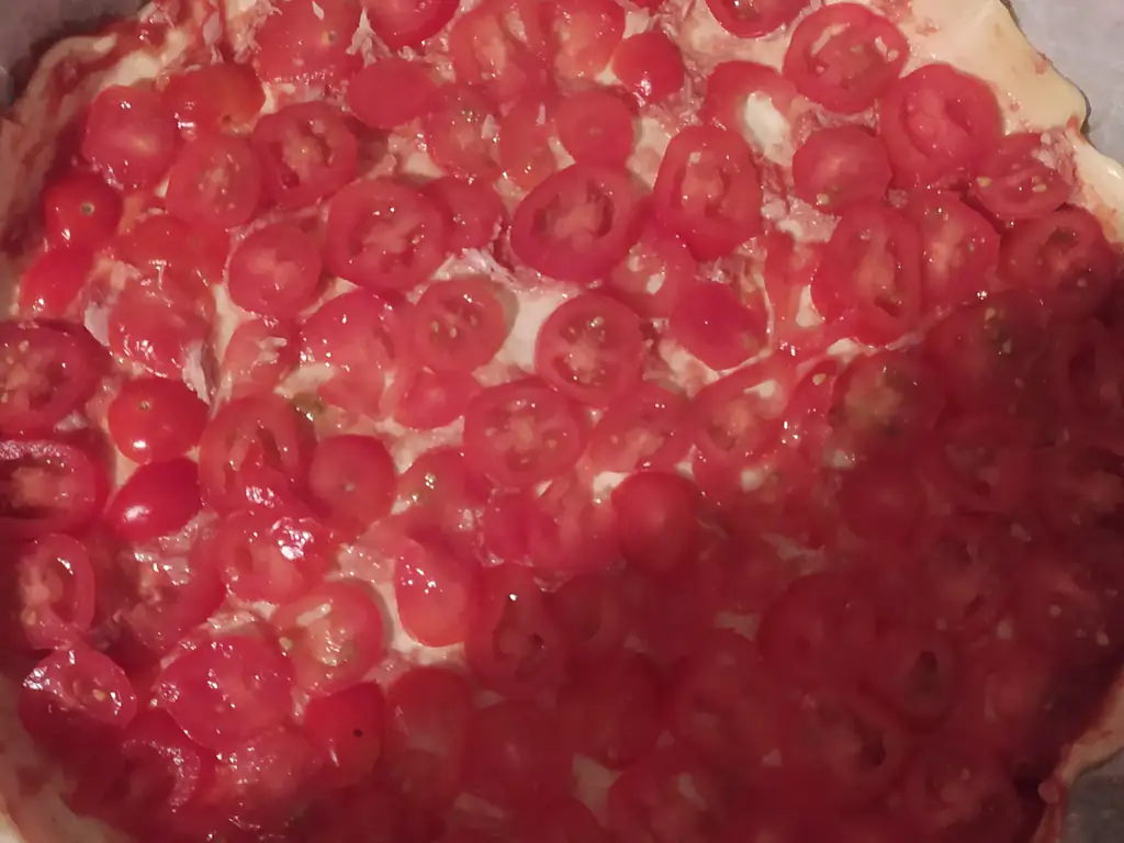 recouvrir de concentré de tomate, saupoudrer le parmesan sur toute la surface.