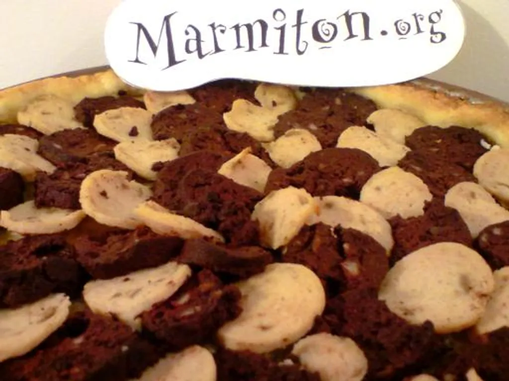 pomme, oignon, huile, poivre, sel, muscade, cannelle, pâte sablée, boudin noir, boudin blanc, beurre salé