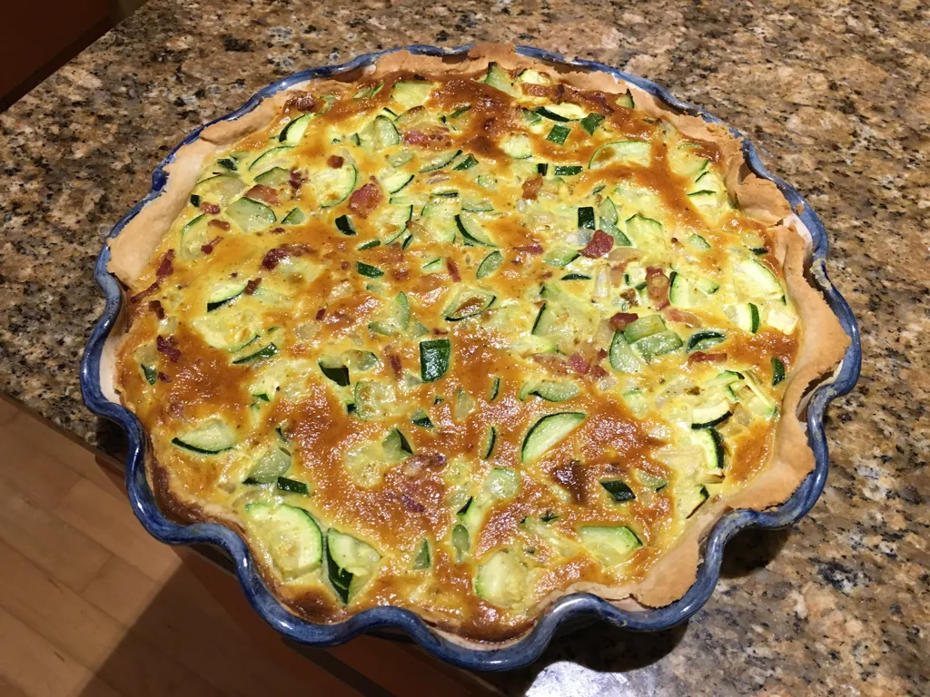 courgette, pâte brisée, lardons, oignon, curry, poivre, crème, oeuf